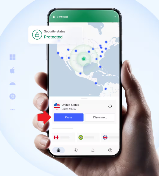 1. Você liga a VPN e escolhe o país para onde quer se “teletransportar” virtualmente.