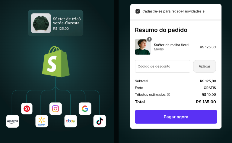 Integrações com marketplaces brasileiros: Mercado Livre, Shopee, Amazon e outros.